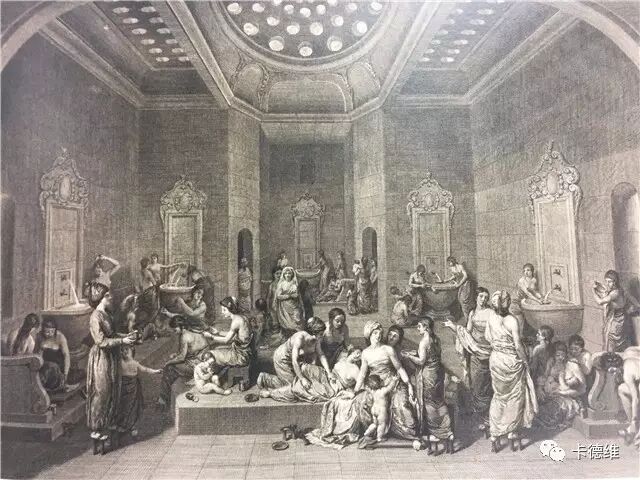 柏林普鲁士文化遗产国家图书馆藏品,Ignace Mouradja d’Ohsson在1787年便记录下了当时女子公共浴室的盛况。